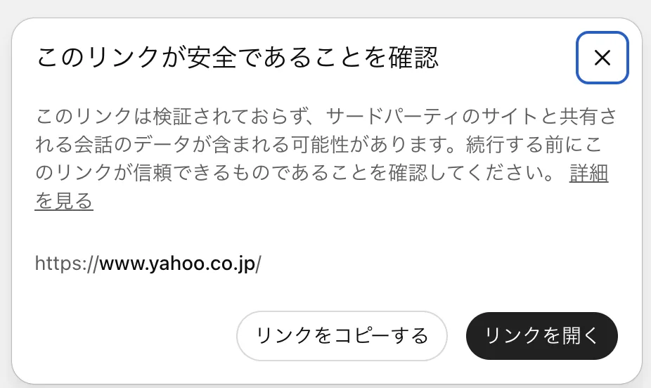 Yahooの画面を開いて!とお願いしてみました。 リンクへの確認が出ましたがとりあえず開いてみる。