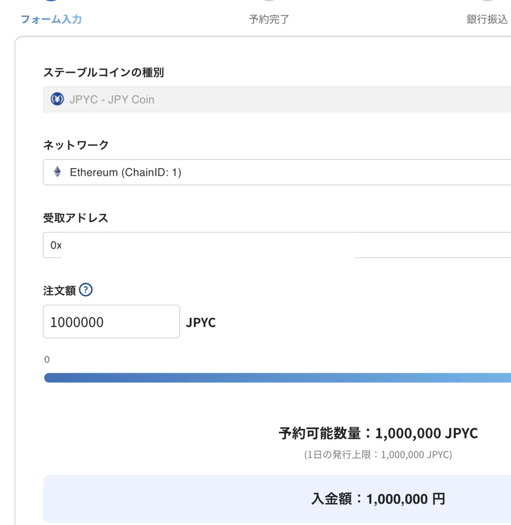 そして早速発行!しようと思ったのですが、なぜか100万円しか発行できない。。。いや、1万円だけ発行仕様と思ったのに、注文学の数字を変更しても変わらない。。。なぜだ・・・ ということで、今日は発行せずに一旦保留で確認してみます。