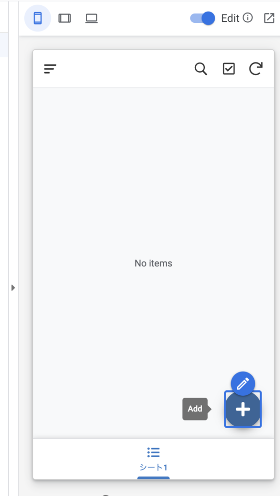 そうすると、何も微調整していませんが、アプリができました。3シートからなるアプリが生成されていました。
