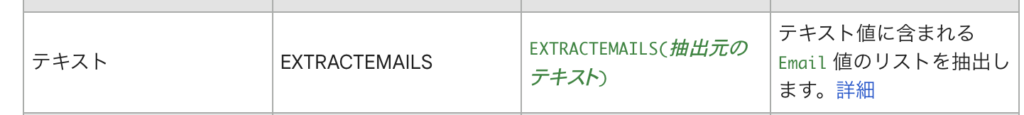 EXTRACTの関数の中に、メールや電話番号を抽出できるものがありました。EXTRACTEMAILS() と EXTRACTPHONENUMBERS() ですね。