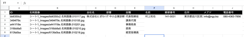 名刺データはEIGHTで大量に管理しているので学習データはありますが、画像も含めてAppsheetに流し込んで、再検証をしてみたい気はしますが、、ちょっと今日はここまでにしときます。