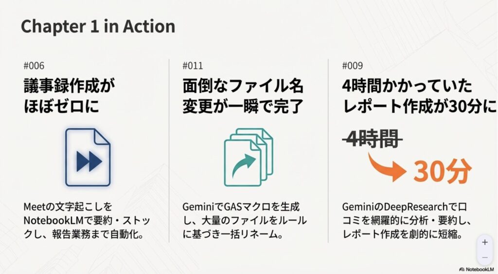 • 006: Meet・Gemini・NotebookLM活用(議事録工数をほぼゼロにし、関連業務も自動化)