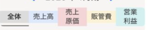 スマホアプリで見ると、毎月の売上や費用データが表示されて、売上、原価、販管費に分けて分析してくれますね。