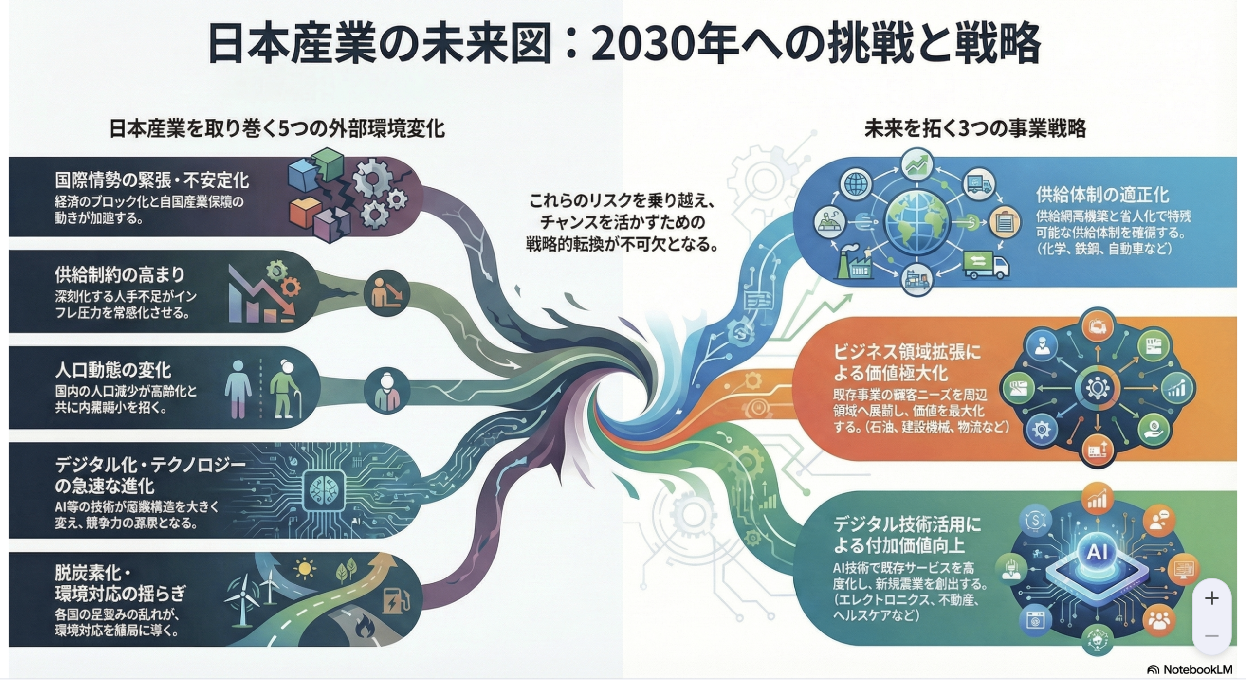 みずほ銀行のレポートが描き出すのは、日本産業が避けては通れない構造変化の姿です。国内需要の縮小、深刻な人手不足、エネルギー問題、そしてビジネスモデルの転換期。これらの巨大な壁に直面する中で、旧来の成功体験はもはや通用しません。事業戦略、技術導入、そしてグローバル戦略の全てにおいて、大胆な変革が求められています。果たして日本の産業界は、2030年に向けてこの荒波を乗りこなし、新たな高付加価値経済を築き上げるための俊敏さを持ち合わせているのでしょうか。未来は、その答えを待っています。