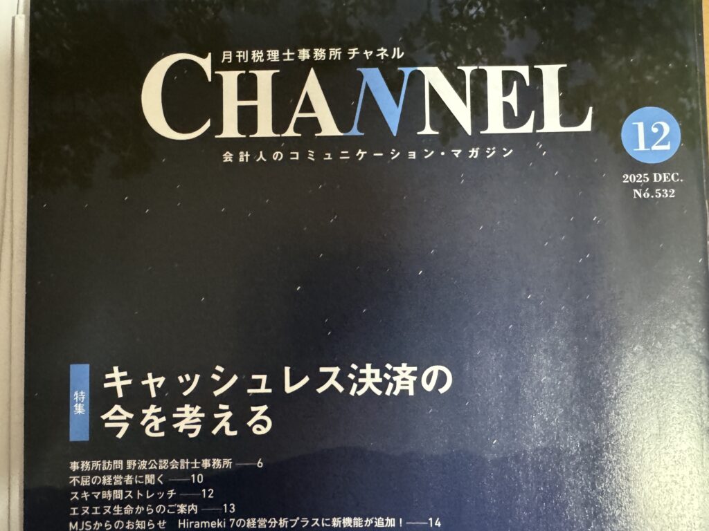 ホーム>執筆>メディア掲載 PR 月間税理士事務所チャンネルに掲載されました。2025年12月7日 今更なんですが、「キャッシュレス決済の今を考える」のインタビューで掲載されています。 ミロク会計さんの業界紙ですね。ミロク会計使っている税理士事務所に届くのでしょうか。 そんなところで。 メディア掲載,執筆Posted by tomoyamurakami