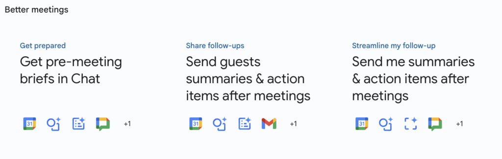 Meetでの会議のサマリをメールしてくれる機能でしょうかね。TASKと連動してやること通知もしてくれるってことかしら。