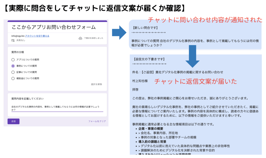 GoogleFormに問い合わせが来たら、回答文面を作ってチャットに通知するのを試してみる