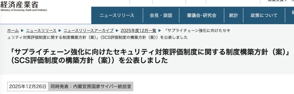 そんな中、年末に経済産業省からサプライチェーンの強化に向けたセキュリティ評価制度を今後構築していくぞ!といった案が出て、現在意見を公募中です。