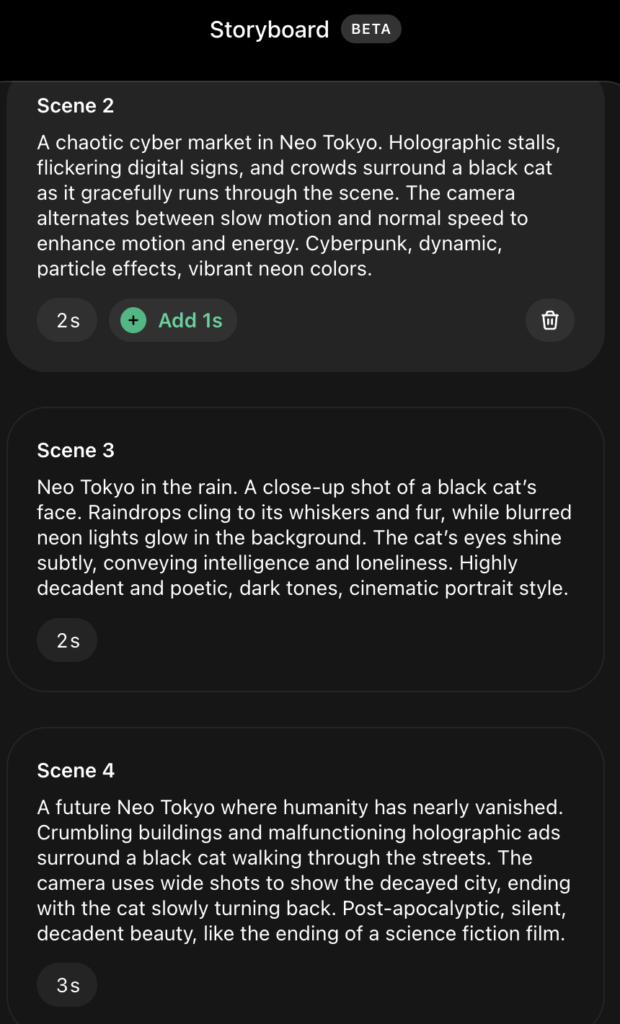Sora2で複数のプロンプトをつないで、複数シーンの動画を一気に生成できるStoryboradが使えるように