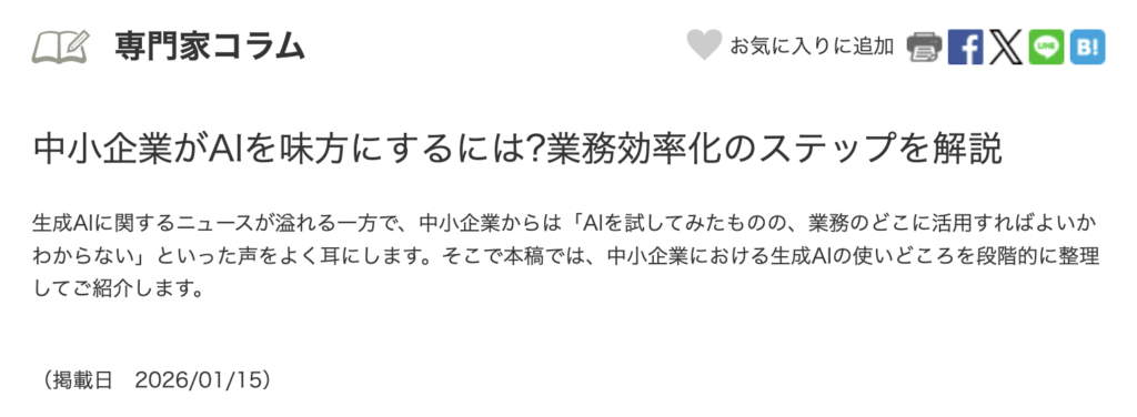 東京商工会議所の活力向上のサイトで中小企業のAI活用について記事を書きました