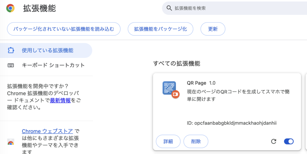chrome://extensions/を開く - 右上の「デベロッパーモード」をONにする
