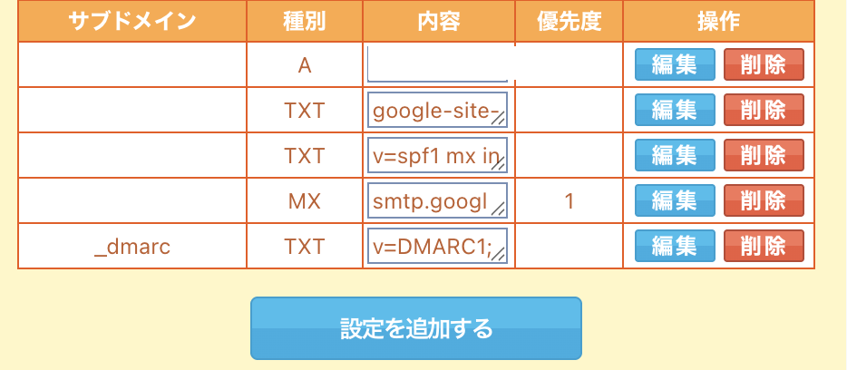 ムームーDNSを改めて設定し直して、dmarcを追加しました。