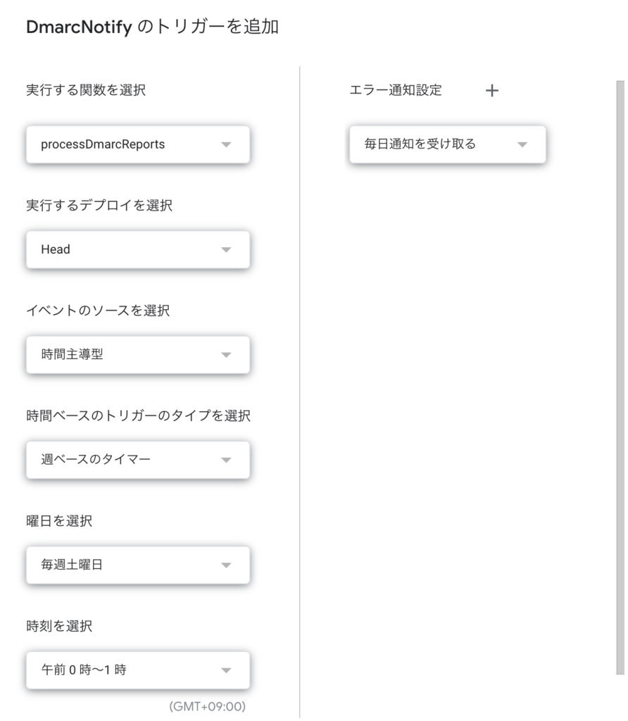 実行する関数を選択して、時間を指定していきます。