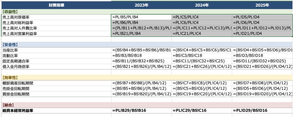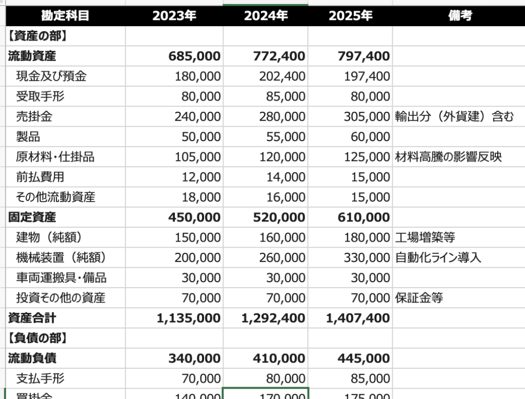 PL計画の数値が計算できました。次にBS計画を計算します。