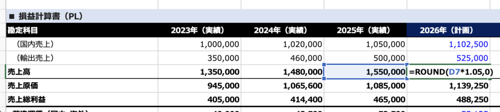 | 売上総利益 | 465,000 | 488,250 | 512,663 | 538,296 |