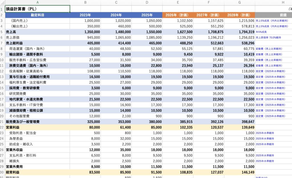 損益計算書(PL)計画