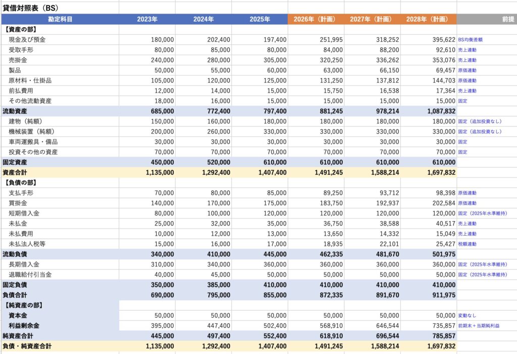 貸借対照表(BS)計画