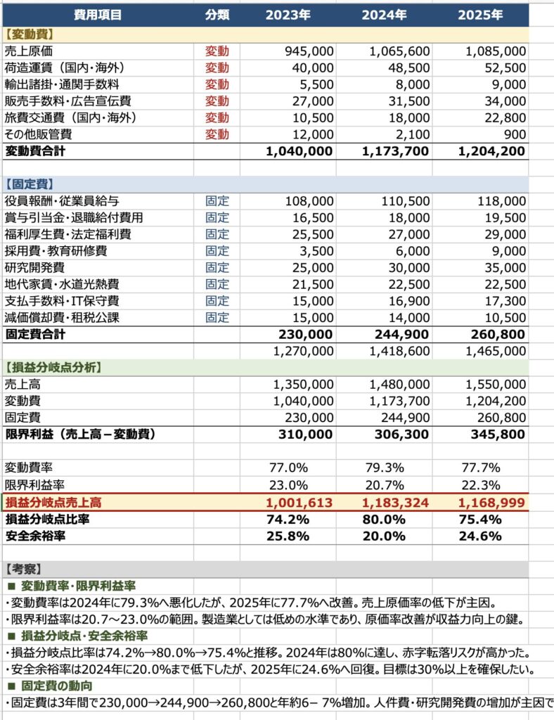 “BSPLからclaude in excelで計算” をダウンロード BSPL-claude-1.xlsx – 1 回のダウンロード – 33.92 KB損益分岐点分析をおねがいしました