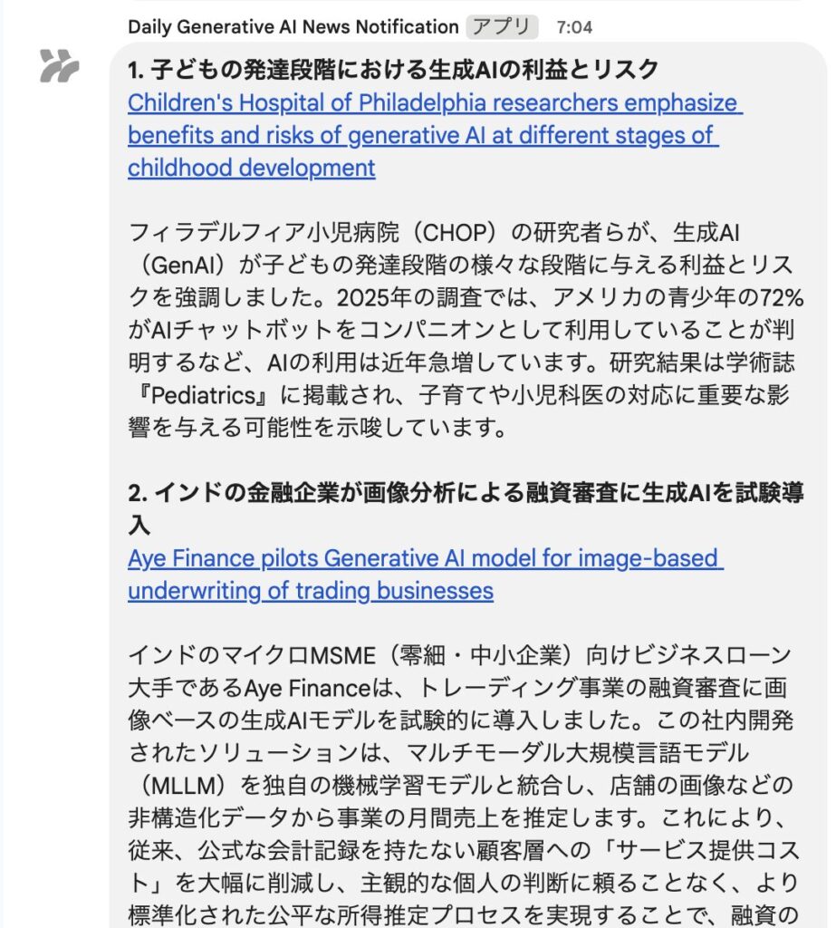英語圏の生成AIニュースを毎朝通知で確認できそうです。しらばくこれでいってみます。