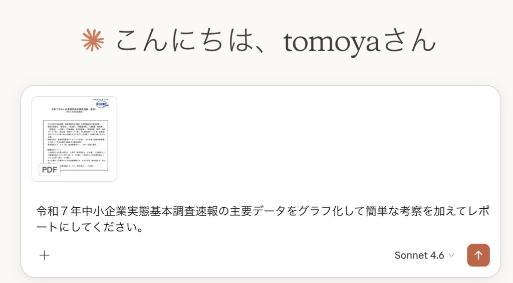 “令和7年中小企業実態基本調査速報(要旨) (令和6年度決算実績)” をダウンロード r07s_00_6.pdf – 5 回のダウンロード – 501.37 KB今回はClaudeにグラフ化してもらいました。PDFをアップロードしてお願いするだけです。