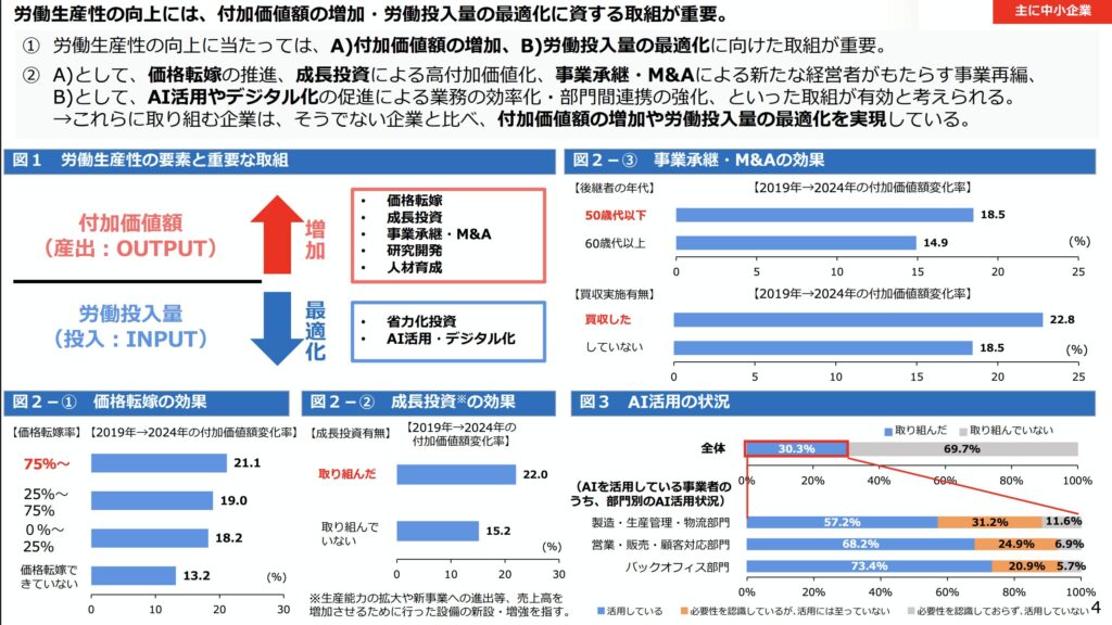 事業承継・M&A経営者の若返り(50代以下への承継)やM&Aを通じた資源集約が付加価値を大きく高める。