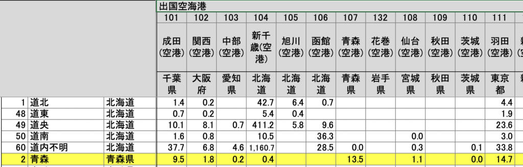 またどこの空港から入国かした、出国したかというデータもあわせてありますね。
