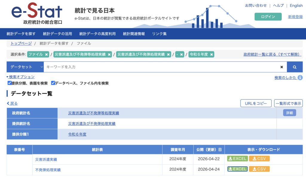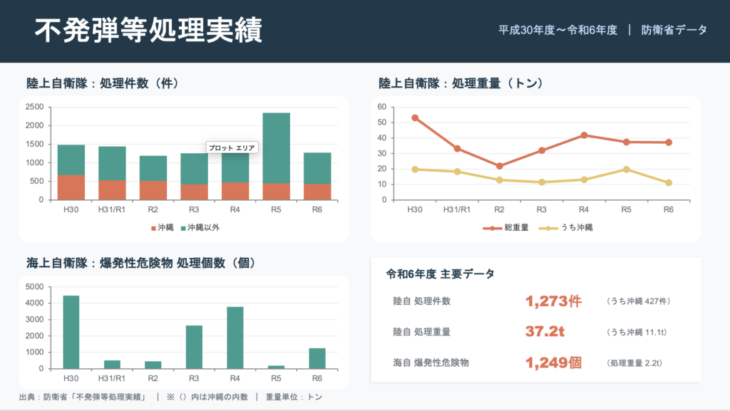 しかし未だに不発弾って結構あるのですね。先週発表されたe-statの不発弾処理実績のデータを図表にまとめました。