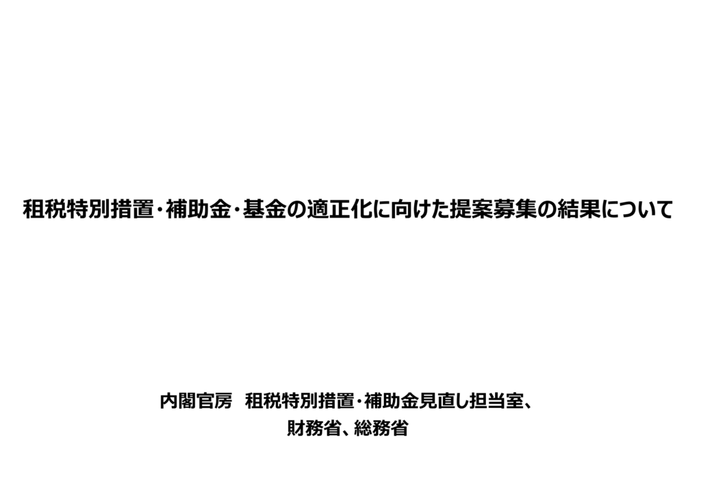 内閣官房からの租税特別措置・補助金・基金の適正化に向けた提案募集の結果について