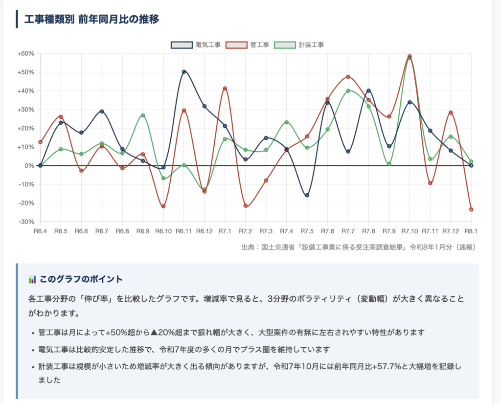 結構、工事の種別によっても違うし、月によっても年によっても工事量ってばらつくんですね。資金繰りとか大変そうだ。